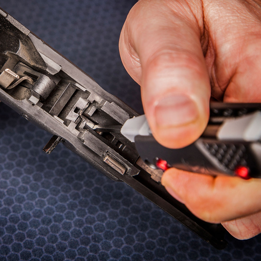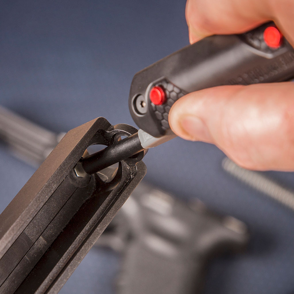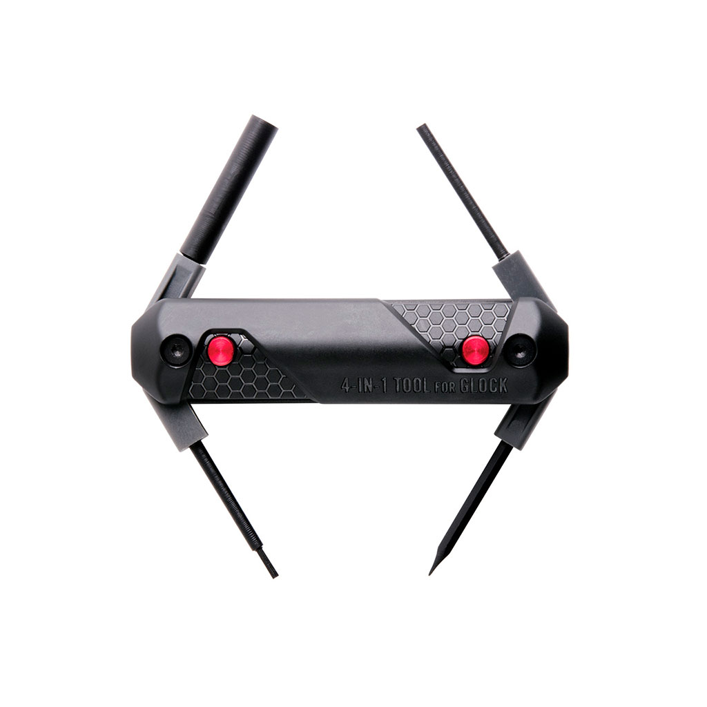 Das schlanke 4-in-1 Glock Tool von Real Avid ist mit 4 praktischen Werkzeugen für die Waffe versehen. Die 4 Werkzeuge Im Inneren des Griffs lassen sich per Knopfdruck aufklappen und ebenfalls einrasten. Dank des Real Avid 4-in-1 Glock Tools entfernen Sie mühelos die Stifte, um die Waffe zu demontieren. Gleichzeitig lassen sich mit dem praktischen Tool das Korn, Verriegelungsblock und die Verriegelungsschieber Feder entfernen.